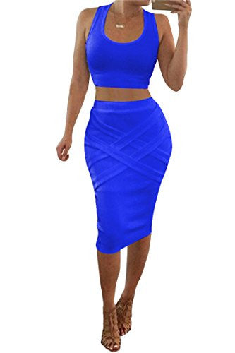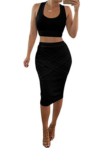 2 pieces set crop top and midi skirt, slim-fit great for casual wear, parties, night out or clubs.